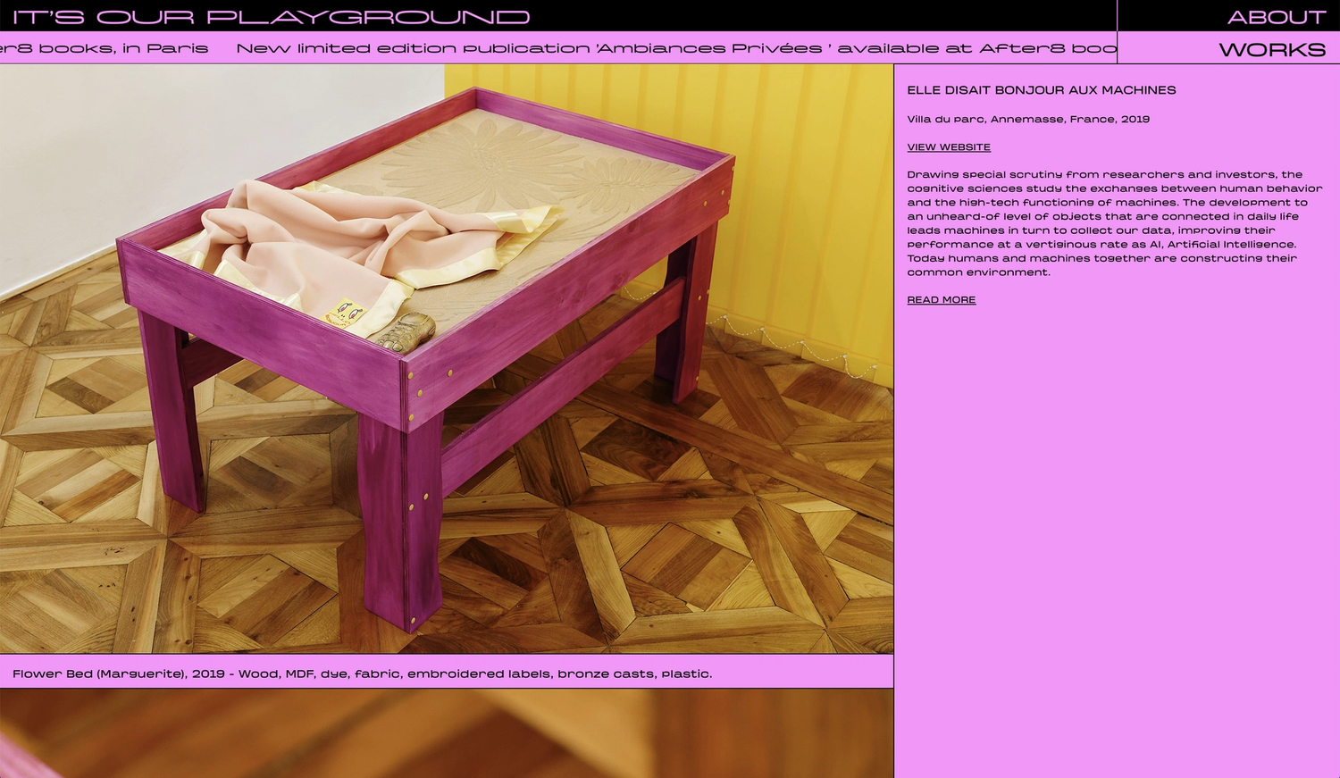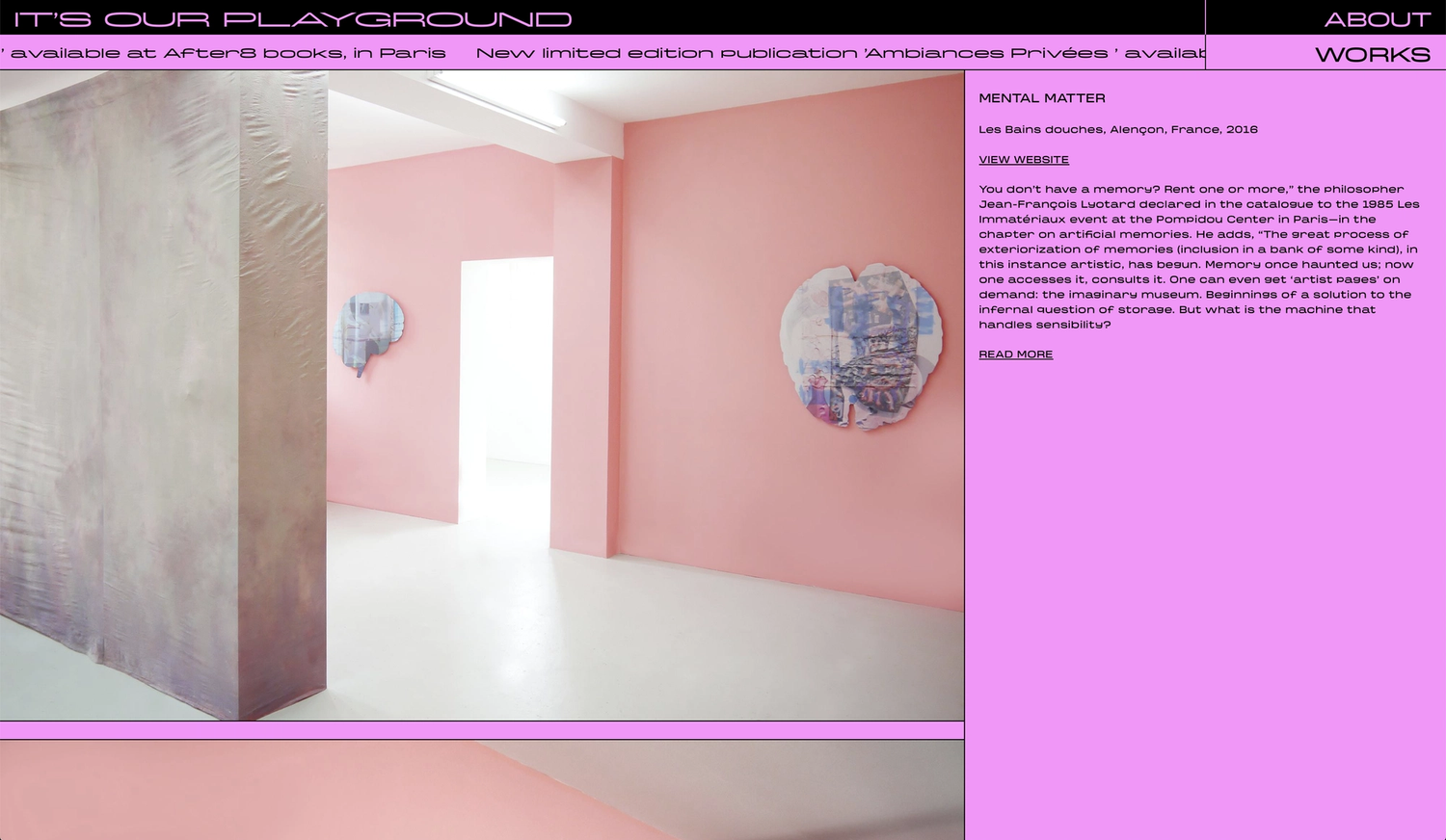 The particularity of this font resides in the treatment of the descendants which are constrained to the baseline. This provides a strong horizontality in the reading. This linearity is amplified by the use of the most extended widths. Thus the vertical space occupied during the composition is very small.
